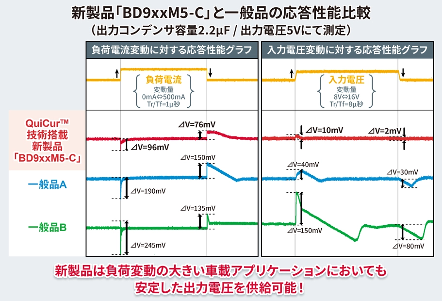 高速負荷応答技術「QuiCur™」搭載により、業界最高レベル※の負荷応答特性を実現した 車載プライマリLDO「BD9xxM5-C」を開発 ~ 入力電圧や負荷電流の変動が大きい車載アプリケーションでも安定した出力が可能~